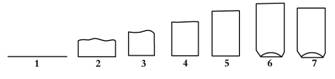 1-板坯料; 2-冲压预拉深;3-再拉深; 4、5变薄拉深; 6-再变薄拉深完成成型;7-切罐身高度、齐边