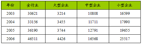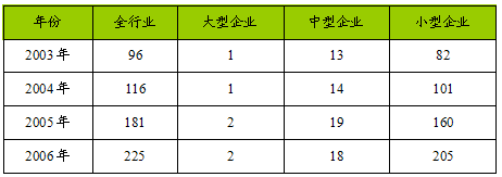 2003年-2006年船用配套设备制造业不同规模企业数量