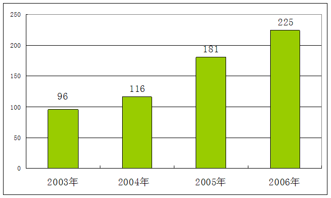 2006年全球船舶工业由于总体产能过剩,已经出现高位拐点和下行轨迹。我国船舶设备国产化率仅40%,大大低于韩国和日本。由于我国对外贸易发展迅猛,船舶航运需求仍然旺盛,国家实施国产化政策给船舶设备生产商带来巨大的国内市场需求,2006年国内船舶设备制造业仍维持较高的景气度,船舶产量增长,产业升级,国产化率提高。