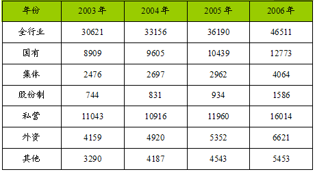 2003年-2006年船用配套设备制造业不同有制分企业数量