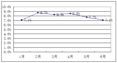 尽管上半年我国居民消费价格总水平(CPI)同比上涨7.9%,但从5月份和6月份的CPI数据看,不论同比还是环比均有所下降,这表明上半年居民消费价格涨幅持续走高的态势已得到初步遏制。
