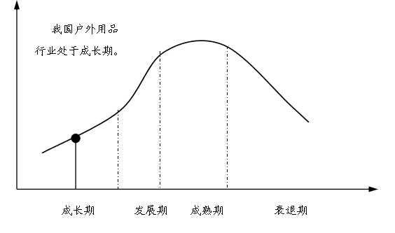 自2000年产业成型以来,我国户外用品以年均48.9%的平均增长率在快速发展,目前我国的户外用品处于 行业 发展周期的成长期。