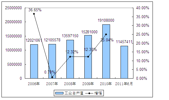第一节 2006-2011年6月制罐机 行业 工业总产值发展状况