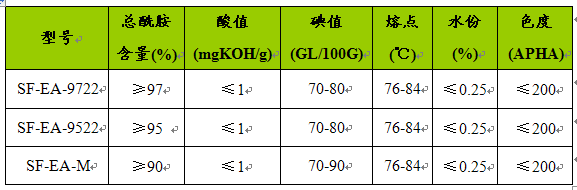 脂肪酸酰胺具有高熔点,低溶解性,良好的稳定性和防水性,广泛用于塑料、造纸、纺织、包装材料、木材加工、金属加工、橡胶工业及以制造表面活性剂及其中间体。高纯度棕榈酸、油酸具有优良的物理、化学特性,在精细化工、医药生产、有机合成、树脂、塑料、 分析 检测等领域的 研究 ,是我国“十五”科技发展的重点开发的化工产品。