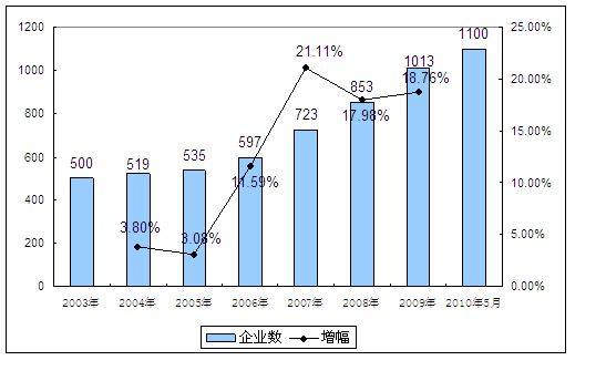 2003-2010年5月其他通用设备制造 行业 企业数量发展状况