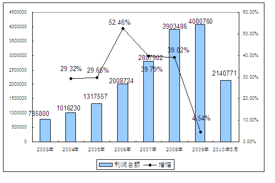 2003-2010年5月其他通用设备制造 行业 利润总额发展状况