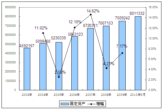 2003-2010年5月其他通用设备制造 行业 固定资产发展状况