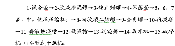 经过终止后的胶浆,送至脱气塔,减压闪蒸出丁二烯,然后借水蒸汽加热真空脱出游离的丙烯腈.丁二烯经压缩升压后循环使用,丙烯腈经回收处理后再使用。