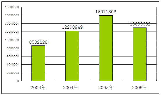 | 2006年 | 13039692 | 2063500 | 1313872 | 9662320 |