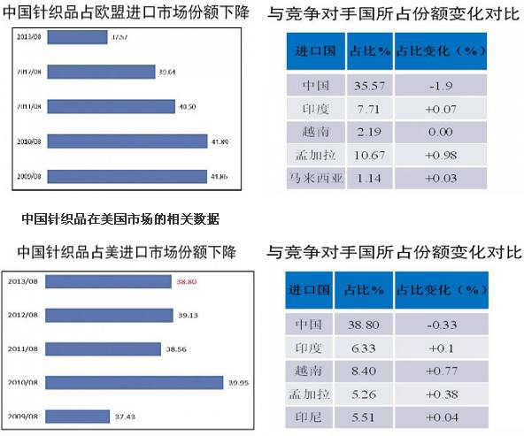 中国针织品在欧盟市场的相关数据、中国针织品在美国市场的相关数据