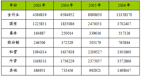 2003年-2006年船用配套设备制造业不同所有制企业工业总产值