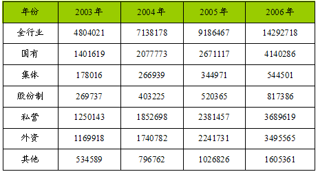 2003年-2006年船用配套设备制造业不同所有制企业销售收入比较