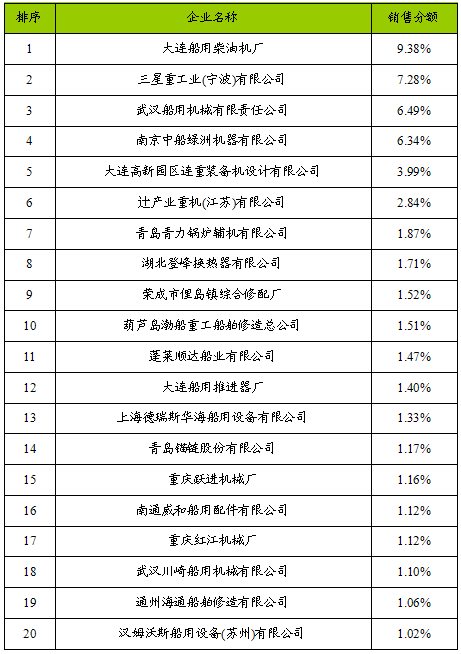 2005年船用配套设备制造业产品销售份额集中度按企业 分析
