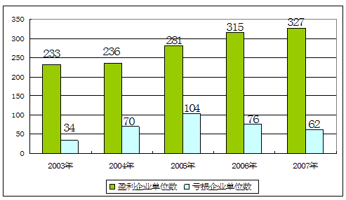 5、2003-2007年赢利亏损企业数量变化状况 分析