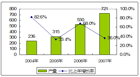 伴随着不锈钢市场的快速发展,我国不锈钢产量也结束了长期徘徊的局面,实现了高速增长。我国不锈钢产量从2000年的46万吨增长到2004年的236万吨,年平均增长率在82.6%,占国内市场需求的比重也由2000年的24.47%提高到2004年的52.80%。而同期,世界不锈钢产量则仅以6%左右的速度增长。