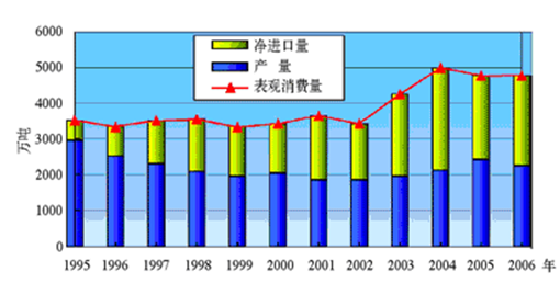 2003年开始情况有所变化。随着我国经济发展进入重化工业化时期,经济结构的调整对能源需求量逐年加大,在国内原油加工量增加13%的影响以及下游强劲需求的推动下,燃料油产量有所增长。