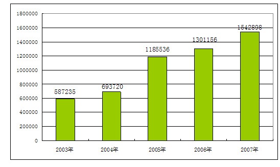 2003-2007年金属压力容器 行业 生产情况(产成品) 单位:千元