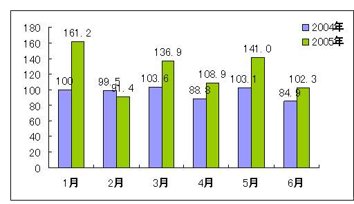 万和与万家乐元旦的促销活动使得他们的零售量在2005年1月份迅速上升,分别为2004年1月的2.2倍与1.5倍;在“两万”这把促销火的猛力燃烧下,2005年1月燃气热水器市场的零售量规模迅速扩张。赛诺数据表明,2005年1月燃气热水器市场的定基环比指数为161.2,比去年同期高出了61.2;由于定基环比指数剔除了监测商场数量变化的影响,因此更能够反映市场零售规模的真实动态。
