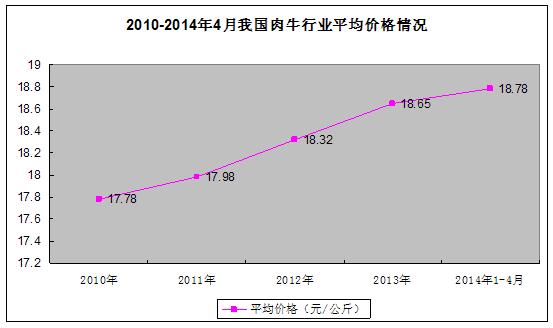 图表62010-2014年4月我国肉牛 行业 平均价格情况