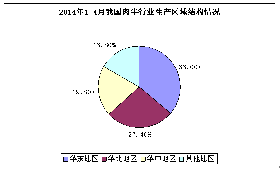 图表42014年1-4月我国肉牛 行业 生产区域结构情况