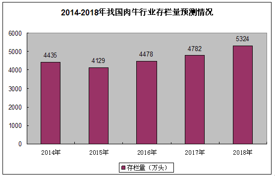图表52014-2018年我国肉牛 行业 存栏量预测情况