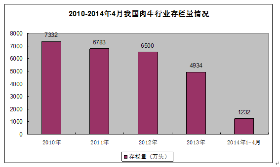 图表32010-2014年4月我国肉牛 行业 存栏量情况