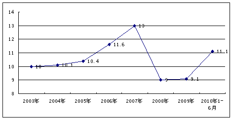 2003-2010年6月我国GDP增长率情况