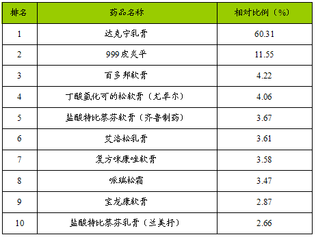 2007年广州药店皮肤软膏类化学药销售排序