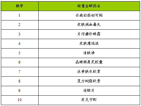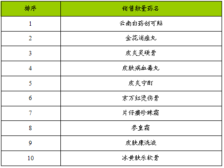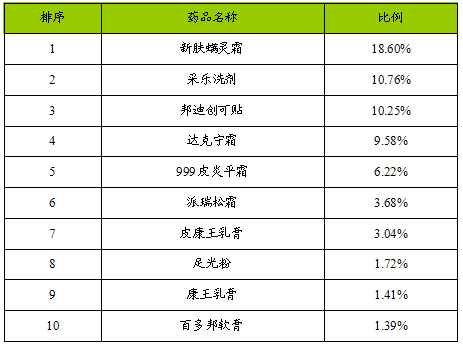 2007年全国药品零售市场皮肤科用药(中药)排行