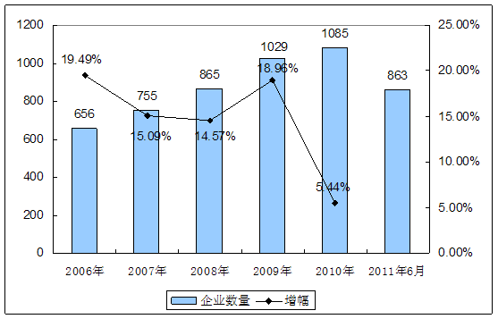 中国石墨阴极炭块工业企业数量变化(石墨及碳素制品制造)