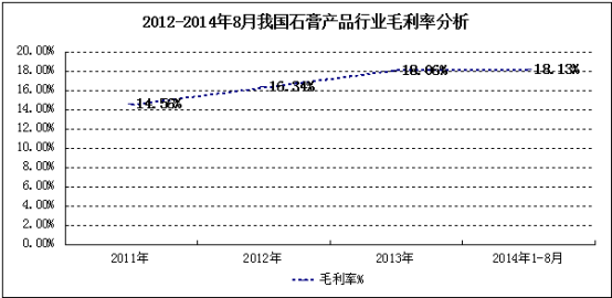 图表 15 2012-2014年8月我国石膏产品 行业 毛利率 分析