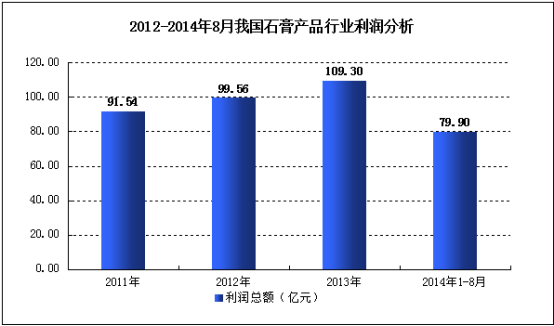 图表 17 2012-2014年8月我国石膏产品 行业 利润 分析