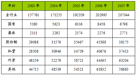 一、2003-2007年液体乳及乳制品制造市场企业从业人员 分析