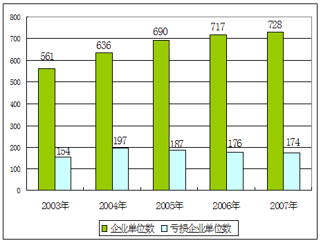 一、2003-2007年液体乳及乳制品制造市场企业及亏损企业数量