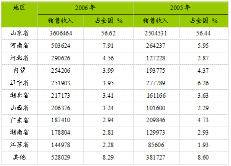 第二节 2006年有机肥料及微生物肥料 行业 产品销售集中度 分析