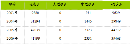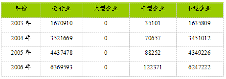 2003年-2006年有机肥料及微生物肥料 行业 不同规模企业总销售收入 分析
