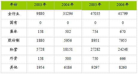 2003年-2006年有机肥料及微生物肥料 行业 不同所有制企业销售税金比较