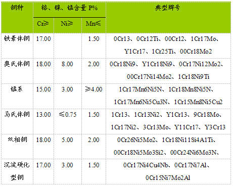 ◆不锈钢、合金工具钢(用千分之几表示C含量),如:1Cr18Ni9千分之一(即0.1%C),不锈C≤0.08%如0Cr18Ni9,超低碳C≤0.03%如0Cr17Ni13Mo