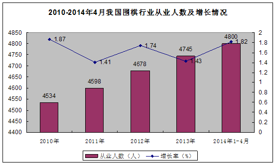 图表42010-2014年4月我国围棋 行业 从业人数及增长情况