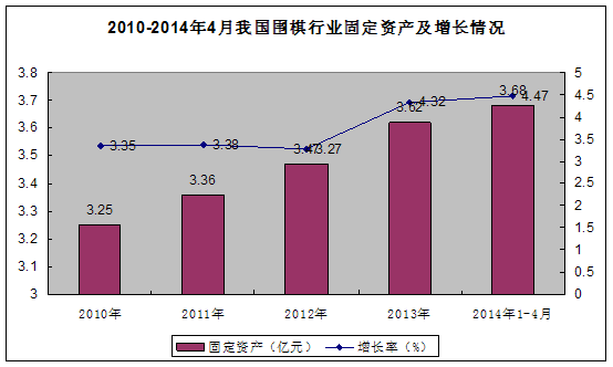 图表52010-2014年4月我国围棋 行业 固定资产及增长情况