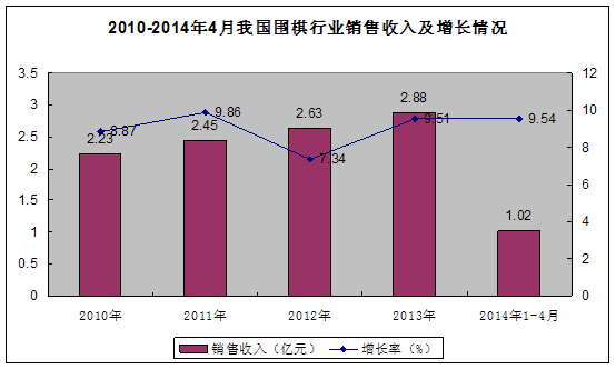 图表62010-2014年4月我国围棋 行业 销售收入及增长情况