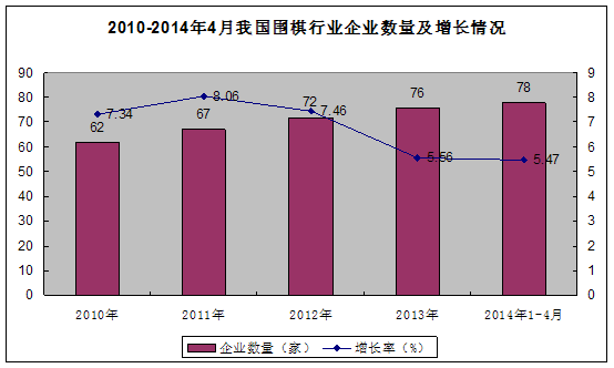 图表32010-2014年4月我国围棋 行业 企业数量及增长情况