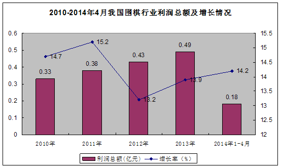 图表72010-2014年4月我国围棋 行业 利润总额及增长情况