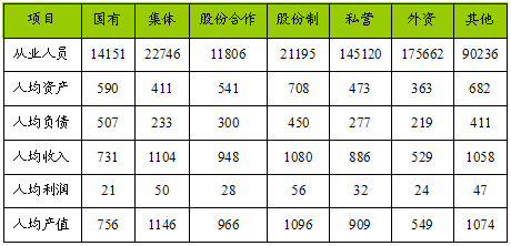 2006年电线电缆 行业 不同所有制企业人均指标 分析