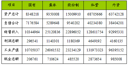 2006年电线电缆 行业 不同所有制企业规模指标 分析