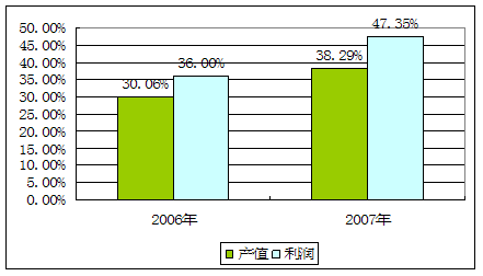 从2006年规模以上企业统计数据来看无论是从业人员、资产总额、工业总产值、主营业务收入还是外贸出口额和利润总额来看,机械 行业 的指标值上升都是非常明显的,各项主要经济指标大体占我国工业总量的15-20%。在发展态势方面我国机械 行业 正处于前所未有的黄金时期,不但发展速度加快、且效益与产销实现同步增长:“十五”期间我国工业总产值年平局增长23。71%,其中2006年同比增长约30。06%,2007年累计同比增长达到了38。29%;“十五”期间实现利润年均增长32。31%,其中2006年比上年增长36。00%,2007年累计同比增长高达47。35%。