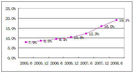 2005.6-2008.6我国互联网普及率