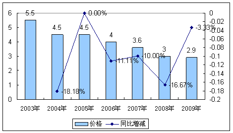 前几年振动马达的利润空间相对较大,近几年价格下降幅度则比较大,目前马达的价位已经降到了一个较低的水平。2003年手机马达的市场价格在5元-6元/只,到2004年大概在4元-5元/只左右,下降幅度较大,2005年手机马达的市场价格基本与2004年持平。目前扁平马达的市场价格约为5元/只,圆柱马达的市场价格在4元/只左右。