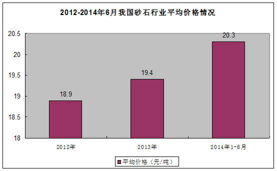 图表 112012-2014年6月我国砂石 行业 平均价格情况