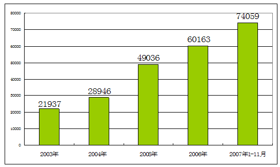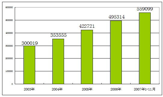 2003-2007年1至11月制帽市场管理费用总额 单位:千元
